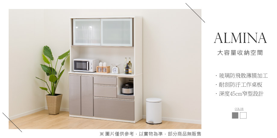 層板皆可調動,附有防物品掉落的防傾倒層板設計。